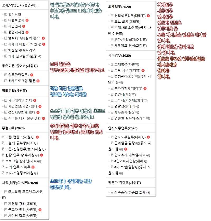 1. 질문은 무조건 업무관련질문 게시판에(프로그램 사용법은 회계프로그램 질문, 같은 업종 답변을 원하시면 끼리끼리) : 어기는 경우 게시글 삭제와 사원등급으로 조정가능