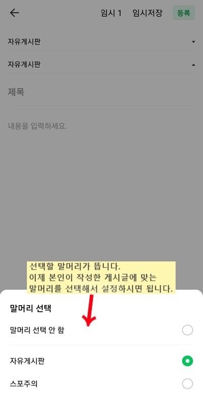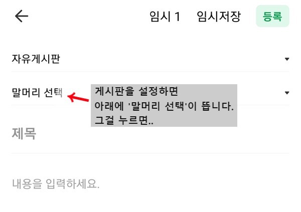 글을 작성 후에는 꼭 말머리를 설정해야 하는데