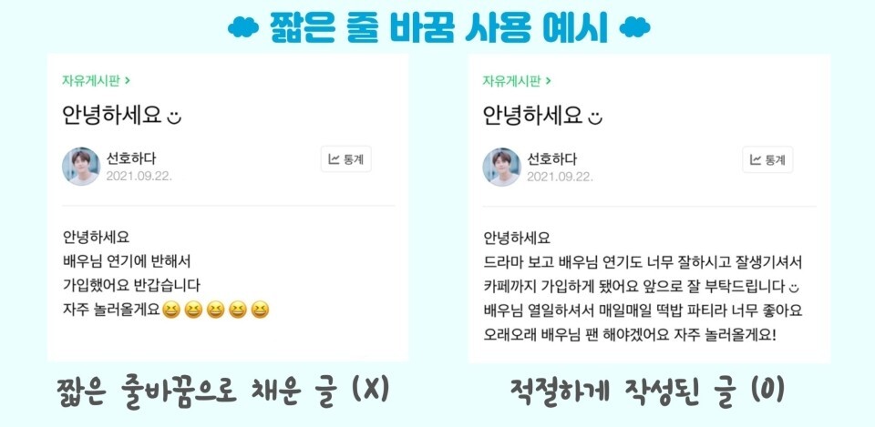 4) 게시글에 타 배우. 가수 ,감독, 작가 언급 시 무통보 삭제