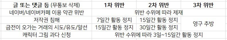 그외 자세한 수위 규정은 해당 링크 참조 : https://cafe.naver.com/black3vezx/775099