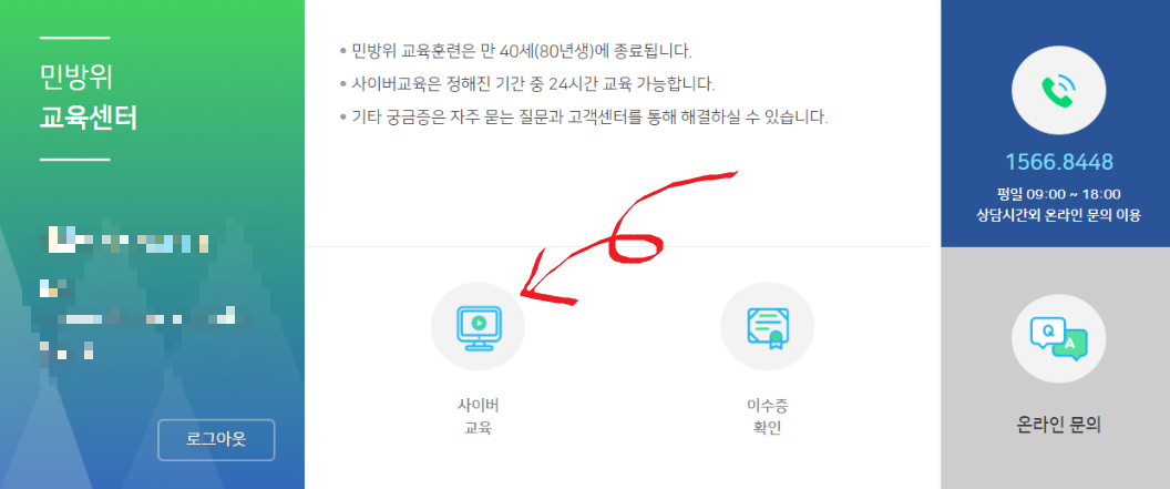우선 민방위 사이버 교육센터에 접속해서 강의를 듣고 문제를 차근차근 풀어볼까요? 문제는 눈감고도 맞출 수 있을 정도이니, 걱정하실 필요없겠죠.