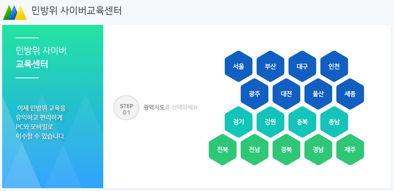 민방위 사이버교육센터(https://www.cmes.or.kr/)로 접속 한 다음 본인의 주민등록등본상의 거주지역을 골라줍니다.