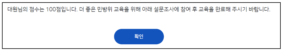 사이버 교육 100점 맞는 방법은 간단합니다. 방법은 바로, 강의를 열심히 듣고 문제를 열심히 읽어보고 답을 골라주시면 됩니다. 하지만 생각보다 평가 문제는 간단하기 때문에 긴장하지 않아도 됩니다.