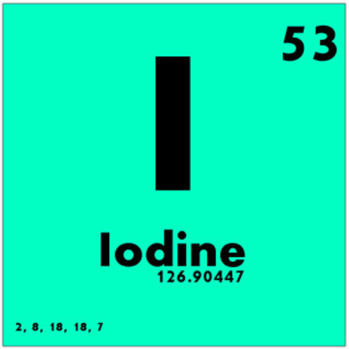 할로젠에 속하는 원소중에 가장 무겁다. 실온에서 검푸른 색이 나는 결정된 고체이며 가열을 했을 때에는 보라색 기체를 내뿜습니다. 아이오딘이라는 말은 그리스어에서 나온말로 보라색을 의미합니다.