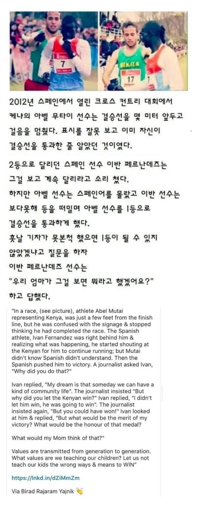 “내가 그 사람을 이기도록 해 준 게 아니라 그 사람이 이기고 있었다.”