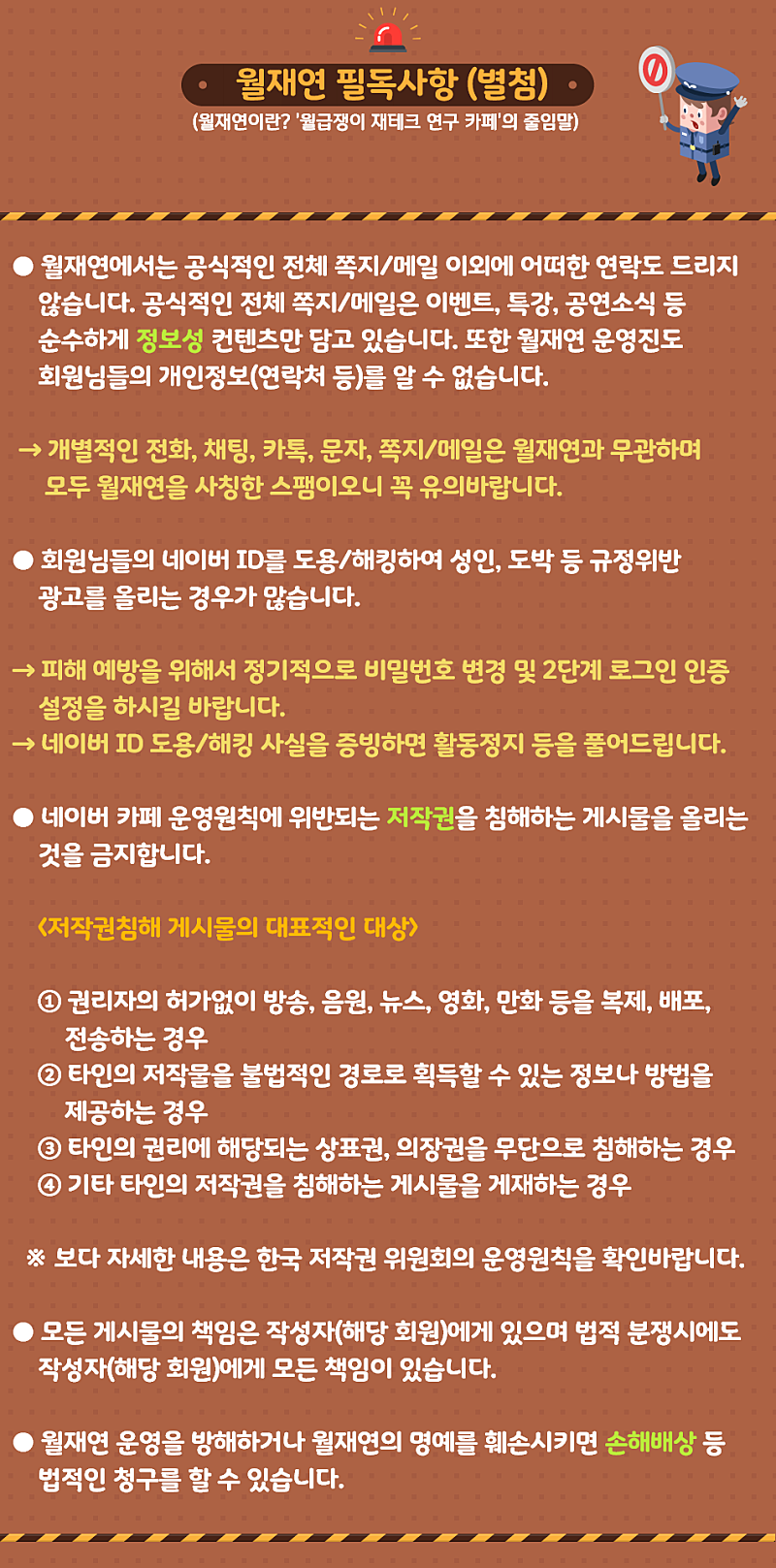 월재연 활동 전, 반드시 아래의 규정을 숙지하시길 당부드립니다.