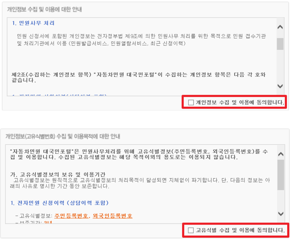 등록증 재발급을 눌러 개인정보 수집과 이용에 동의를 해주시면 되고, 신청인의 이름과 주민등록번호를 기입해 주셔야합니다.