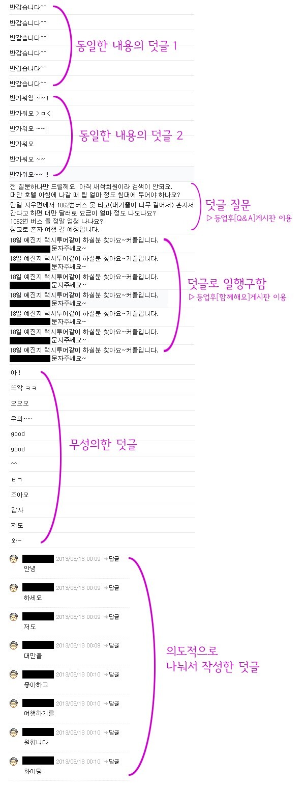 단, <주요정보 / 추천코스 / 여행의기초 / 타이완100배즐기기 / 메이's 대만여행기 / 공지사항> 게시판 및 <여행지소개>