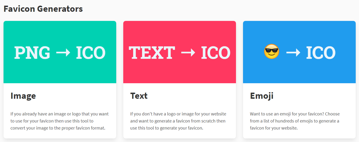 해당 사이트에서 제공하는 아이콘 생성기는 세가지 기능으로 이루어져 있습니다. 첫 번째 는 png 그림파일을 아이콘으로 바꾸는 기능과 text글자를 아이콘으로 바꾸는 법 그리고 이모지(이모티콘)를 아이콘으로 바꾸는 기능 총 세 가지로 이루어져 있는데 저는 text 글자를 사용해 간단하게 아이콘을 생성해서 적용해보도록 하겠습니다.