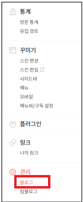 이제 본인의 티스토리 블로그 설정에서 관리 옵션에 블로그를 찾아 들어가 주시면 됩니다.