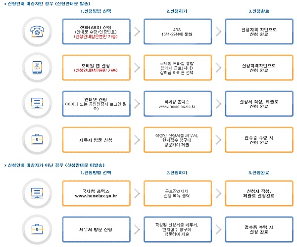 전화 ARS로도 신청이 가능하고 아래에서 안내해드릴 예정인 온라인과 모바일 홈택스 또한 세무서를 방문하셔도 신청이 가능합니다.