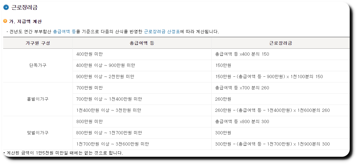 근로장려금 지급액 계산 방법