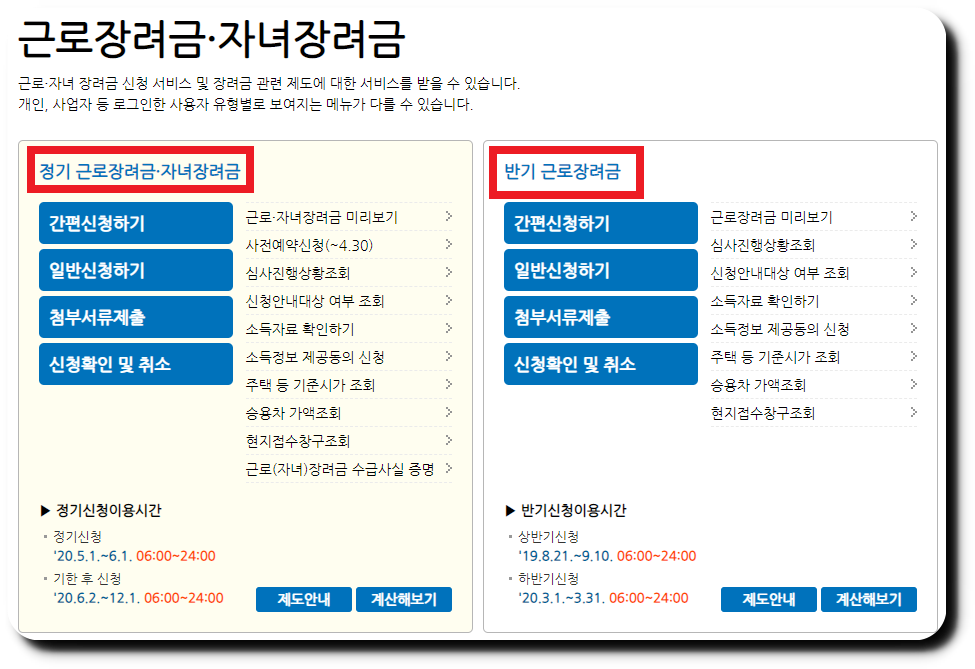 ※ 자녀장려금은 반기신청 대상 아니기 때문에 잘 확인하셔야하겠습니다. 또한 정기신청의 경우, 기한 후 신청시 근로장려금 금액은 원래 금액의 90%만 지급됩니다.
