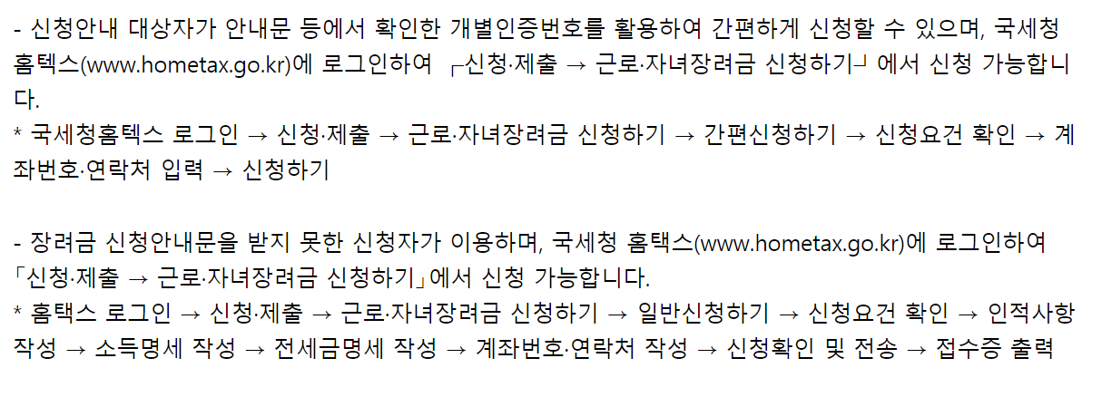 정기 근로장려금 자녀장려금 신청방법 종류